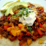 I spooned the mince and salsa mixture onto my tortilla, sprinkled some grated cheese, added some fresh avo, sour cream and fresh cilantro.