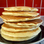 Sift or whisk dry ingredients together. Add the milk and mix well. Add the eggs one at a time, whisking well between each addition. Add the vanilla extract. Lastly whisk in the melted butter. Heat the pan on a medium heat and pour on a measure of the batter (all depends how big or small you want the flapjack to be) and cook on one side till bubbles form, pop and don’t refill with batter. Flip over and cook till golden brown underneath. Serve warm with anything you like. mmm Nutella.