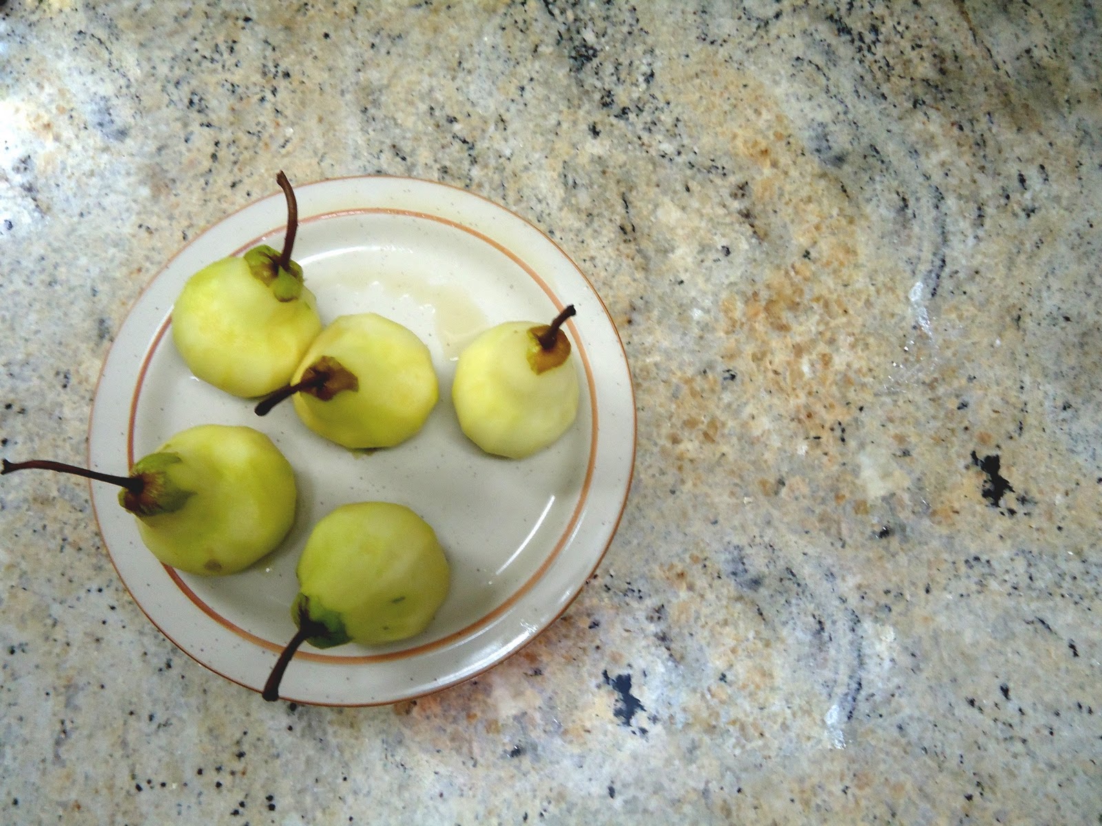Now the pears were something new so I googled. Most of the recipes had white wine and I knew that method already, however my husband doesn’t drink, he doesn’t like the taste of alcohol so I searched a little deeper and found this recipe