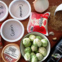 - In the meantime, cut the tails off your brussel sprouts and slice them in half.